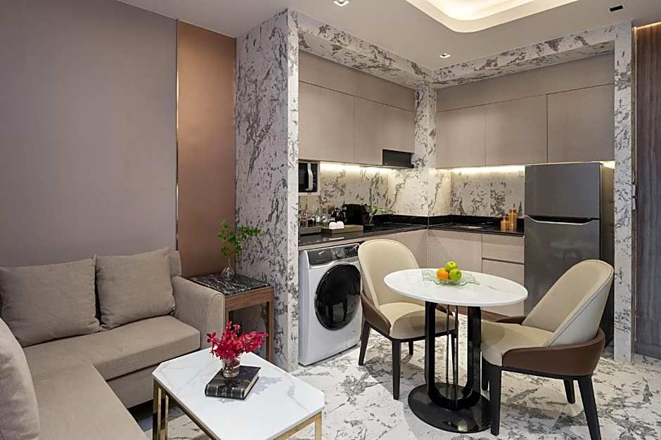 Providing floor-to-ceiling window, a comfortable seating area, a dining table, kitchenette, microwave. With bathroom with rainshower, bathtub, and bidet. • Premium breakfast from 7:00 to 11:00 • Free Chai n’ Truffles (chocolate buffet) from 15:00 to 16:00. • Free chocolate and fruits hours from 15:00 to 16:00. • Shuttle service every 15 min to BTS (skytrain) Phrom Phong, Emporium, EmQuartier, and EmSphere malls • Shuttle service to QSNCC during events.
